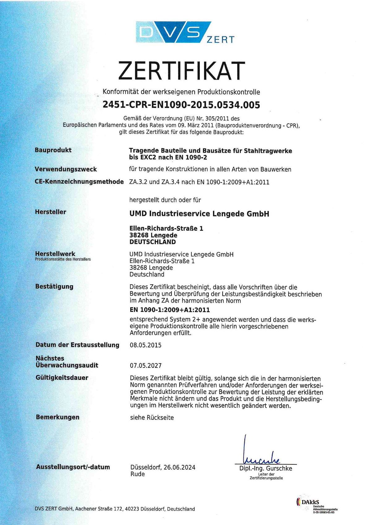 Unser Betrieb erfüllt die Anforderungen der EN 1090-2015, um sicherzustellen, dass unsere Stahl- und Aluminiumkonstruktionen höchsten Sicherheits- und Qualitätsstandards entsprechen.