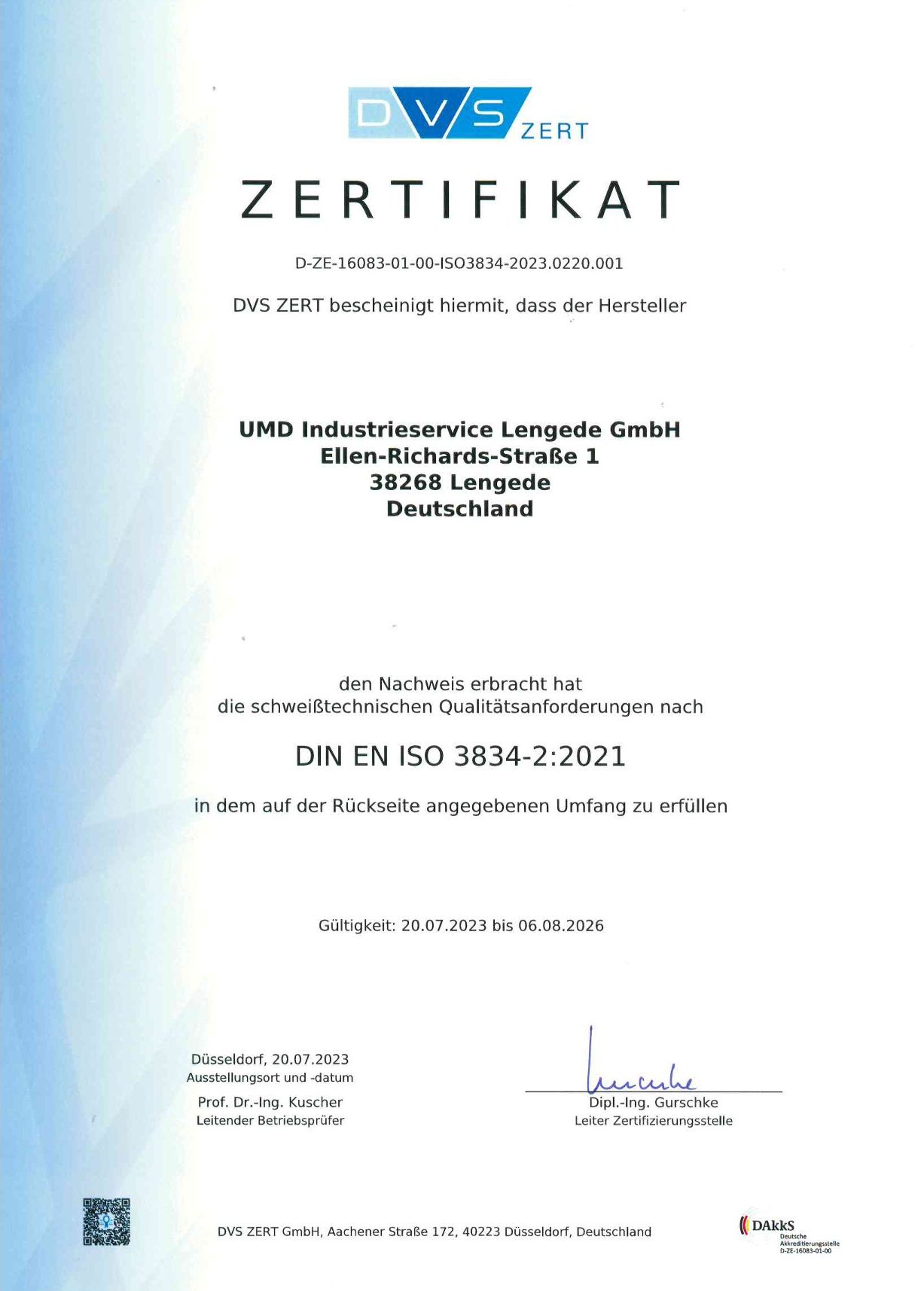 Unser Schlosser- und Schweißfachbetrieb erfüllt die Anforderungen der ISO 3834-2, um sicherzustellen, dass unsere Schweißarbeiten höchsten Qualitätsstandards entsprechen und die gewünschten Sicherheits- und Funktionsanforderungen zuverlässig erfüllt werden.