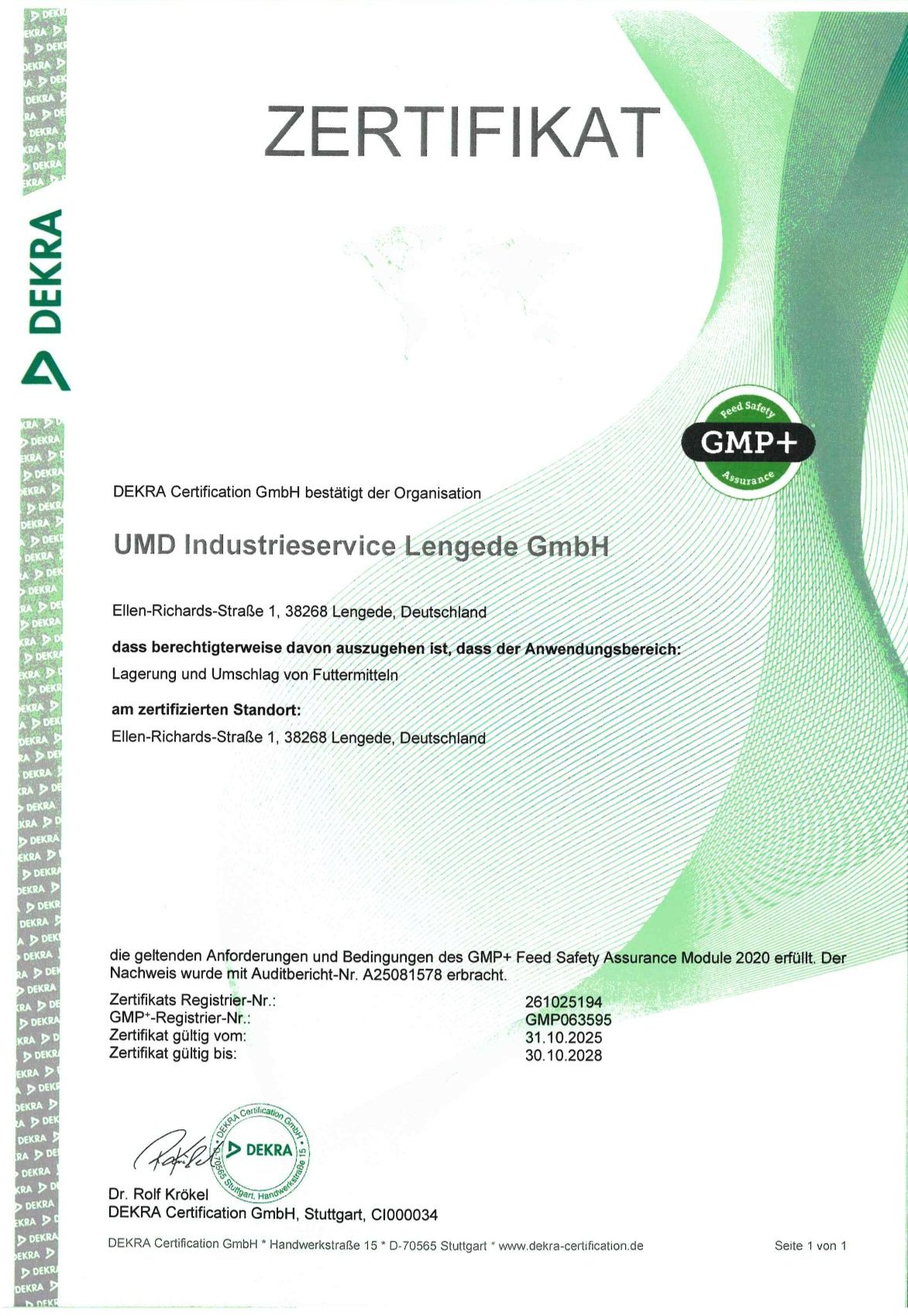 Unser Unternehmen erfüllt die Vorgaben der Guten Herstellungspraxis (GMP+) für die sachgemäße Lagerung und den Umschlag von Tierfuttermitteln, um höchste Qualität und Sicherheit zu garantieren.